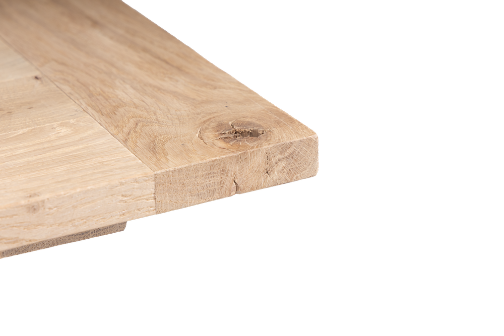 Een eiken tafelblad bestaat standaard uit meerdere planken of balken, welke worden verlijmd middels pen-en-gat verbindingen. Elke plank of balk in onze tafelbladen wordt specifiek geselecteerd, om ervoor te zorgen dat het uiteindelijke tafelblad een rustig en passend geheel vormt. Hiervoor gaat elke plank meerdere keren door onze handen. Een landelijke salontafel kunnen wij in elke gewenste maatvoering leveren. Ook een XXS of XXL tafel behoort tot onze mogelijkheden. En natuurlijk is een ronde, ovale of vierkante tafel ook een optie.